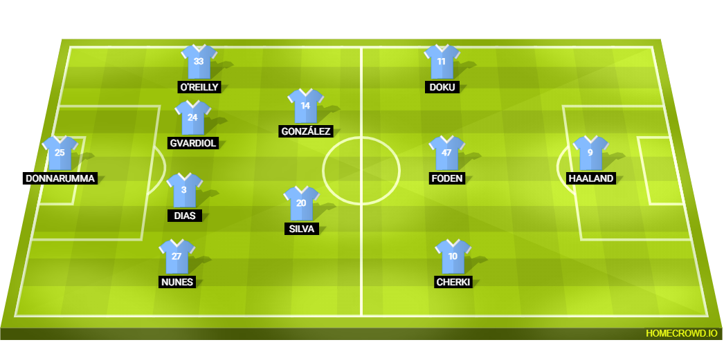 Probable Lineup (4-2-3-1): Donnarumma; Nunes, Dias, Gvardiol, O’Reilly; Bernardo, Gonzalez; Cherki, Foden, Doku; Haaland