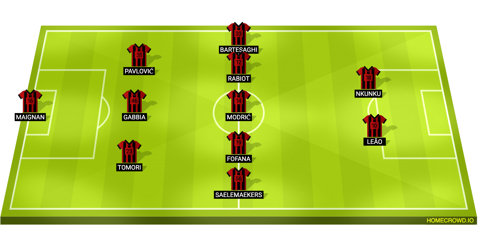 Alexis Saelemaekers and Davide Bartesaghi are the preferred options in the wing-back roles, while Luka Modric will lead the midfield setup alongside Youssouf Fofana and Adrien Rabiot. The aforementioned Leao and Nkunku are likely to lead the line if Pulisic is deemed unfit for this clash.