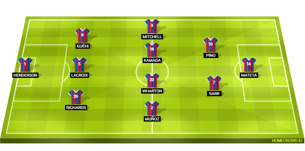 Probable Lineup (3-4-2-1): Henderson; Richards, Lacroix, Guehi; Munoz, Wharton, Kamada, Mitchell; Sarr, Yeremy Pino; Mateta