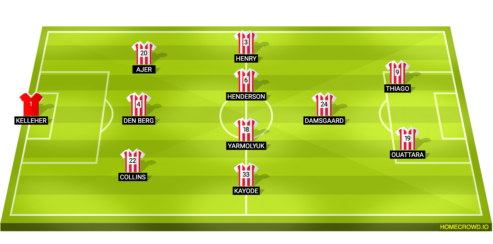 Probable Lineup (3-4-1-2): Kelleher; Kayode, Collins, Van den Berg, Ajer, Henry; Yarmoliuk, Henderson; Damsgaard; Ouattara, Thiago