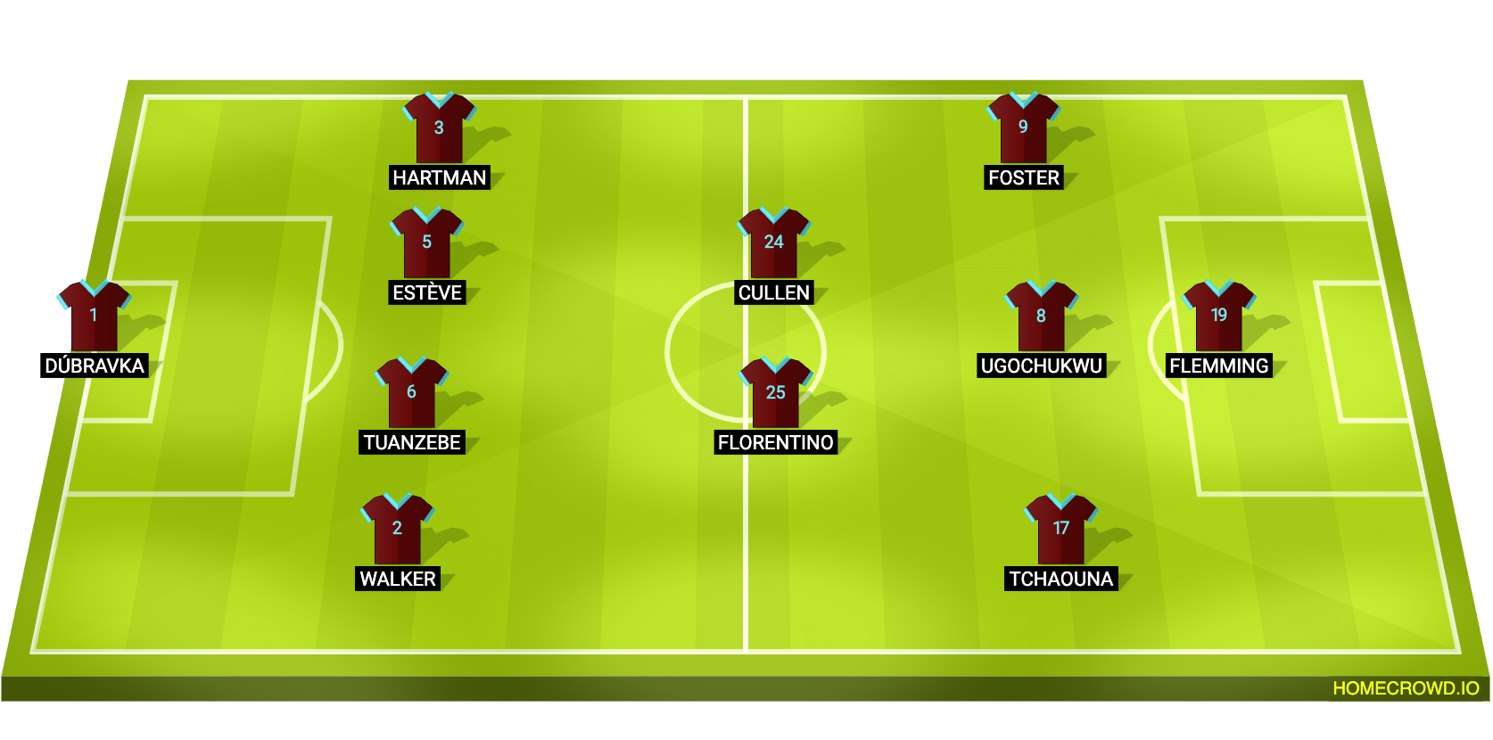 Probable Lineup (4-2-3-1): Dubravka; Walker, Tuanzebe, Esteve, Hartman; Florentino, Cullen; Tchaouna, Ugochukwu, Foster; Flemming