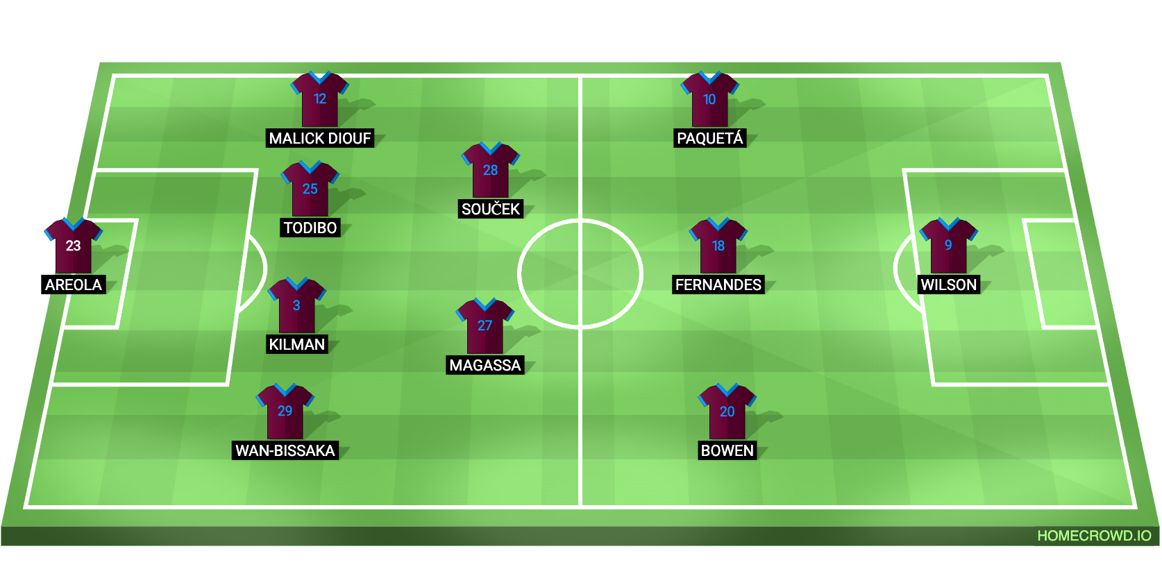 Probable Lineup (4-2-3-1): Areola; Wan-Bissaka, Kilman, Todibo, Diouf; Magassa, Soucek; Bowen, Mateus Fernandes, Paqueta; Wilson
