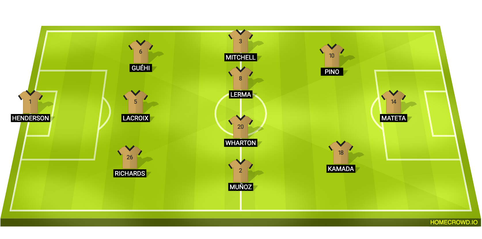 Probable Lineup (3-4-2-1): Henderson; Richards, Lacroix, Guehi; Munoz, Wharton, LErma, Mitchell; Kamada, Pino; Mateta