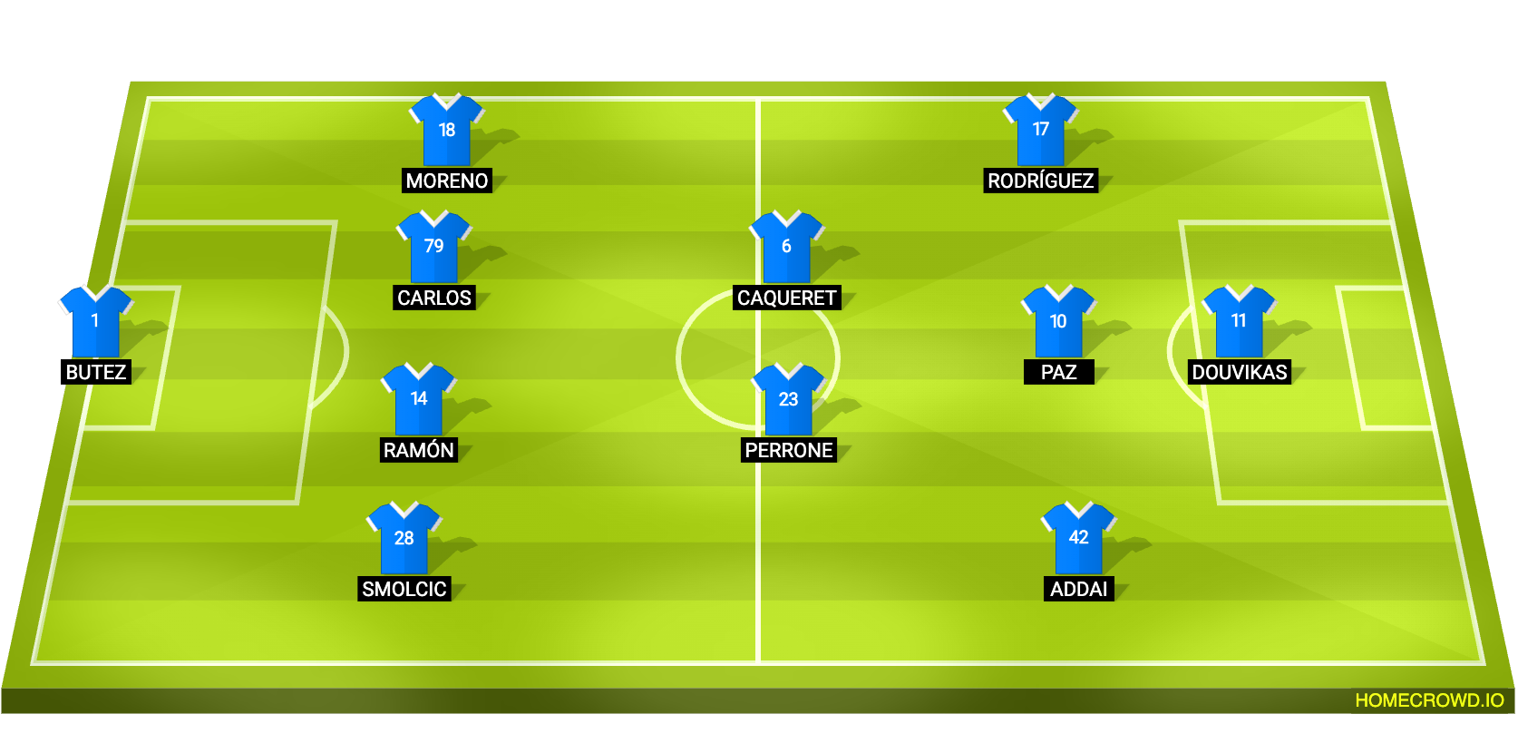 Probable Lineup (4-2-3-1): Butez; Smolcic, Ramon, Carlos, Moreno; Perrone, Caqueret; Addai, Paz, Rodriguez; Douvikas
