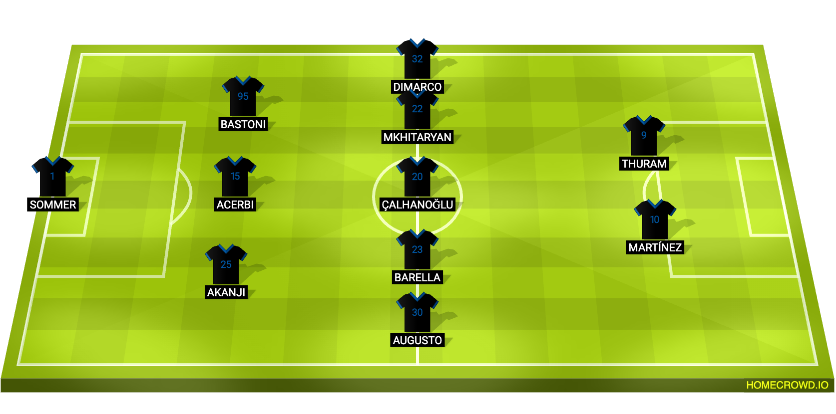Probable Lineup (3-5-2): Sommer; Akanji, Acerbi, Bastoni; Augusto, Barella, Calhanoglu, Mkhitaryan, Dimarco; Thuram, Martinez