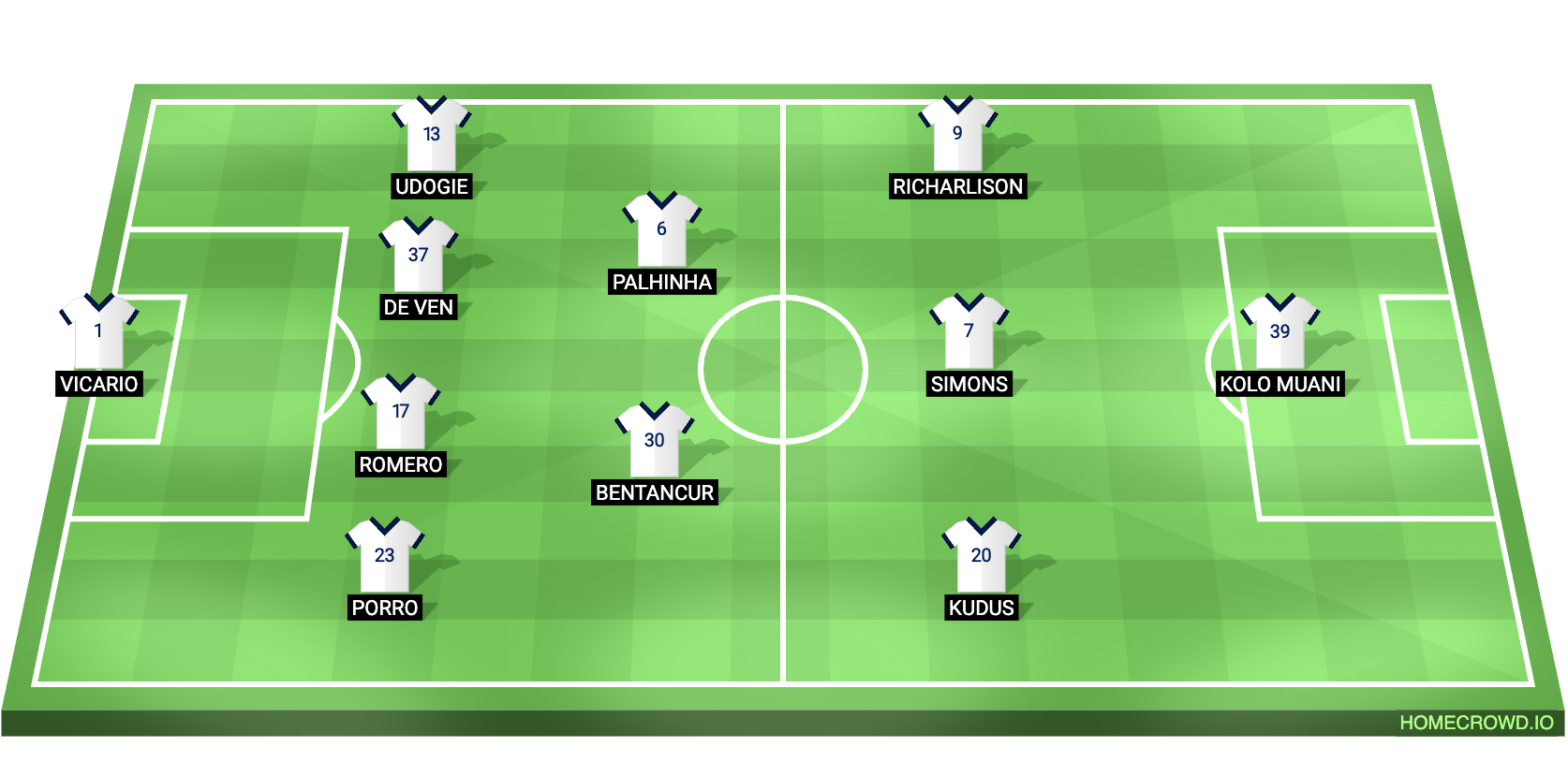 Probable Lineup (4-2-3-1): Vicario; Porro, Romero, van de Ven, Udogie; Bentancur, Palhinha; Kudus, Simons, Richarlison; Kolo Muani