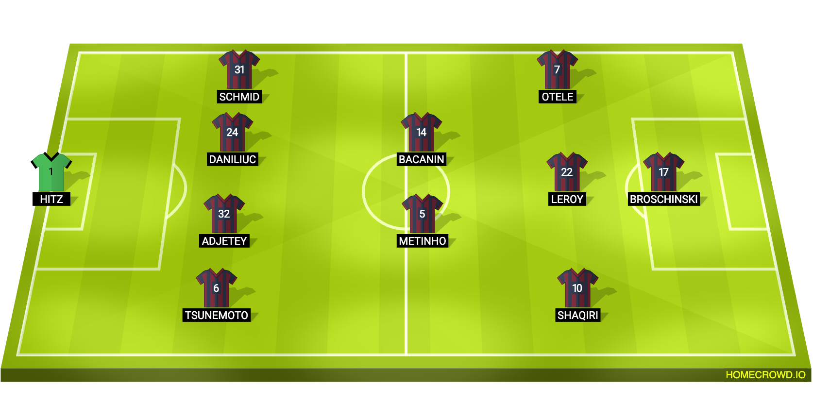 Probable Lineup (4-2-3-1): Hitz; Tsunemoto, Adjetey, Daniliuc, Schmid; Metinho, Bacanin; Shaqiri, Leroy, Otele; Broschinski