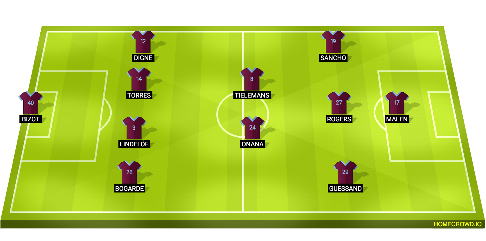 There could be further changes in the attacking third, as Donyell Malen could lead the line for Aston Villa in place of Ollie Watkins. Similarly, Jadon Sancho and Evann Guessand should feature in the wide areas, meaning there could be a rest for John McGinn ahead of the weekend’s action in the Premier League.