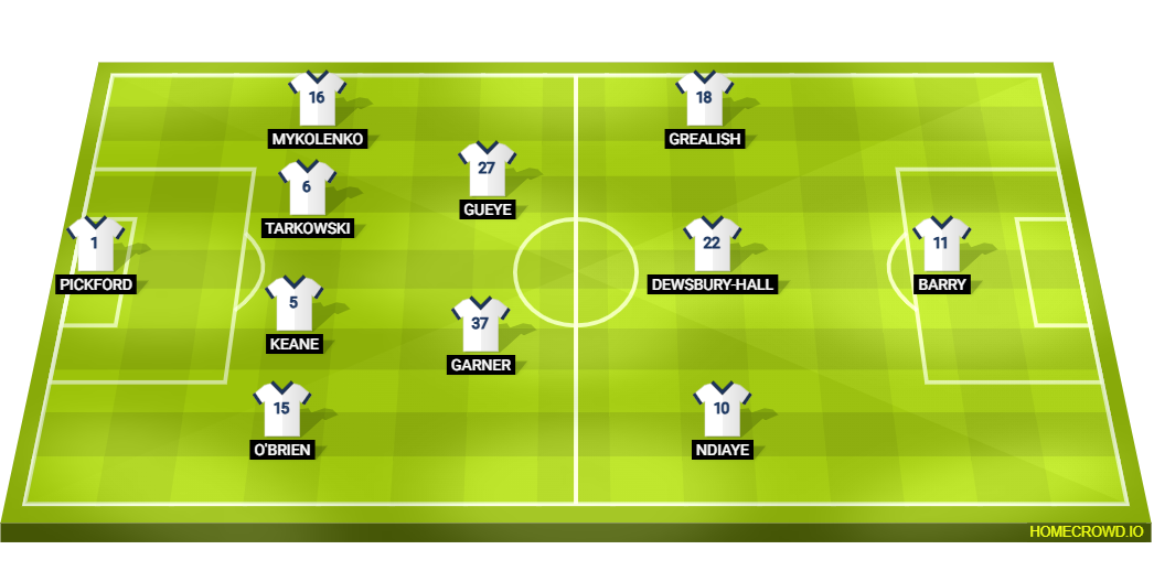 Probable Lineup (4-2-3-1): Pickford; O’Brien, Keane, Tarkowski, Mykolenko; Garner, Gueye; Ndiaye, Dewsbury-Hall, Grealish; Barry