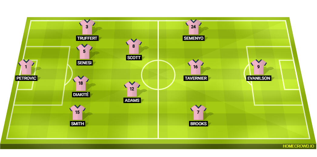 Probable Lineup (4-2-3-1): Petrovic; Smith, Diakite, Senesi, Truffert; Adams, Scott; Brooks, Tavernier, Semenyo; Evanilson