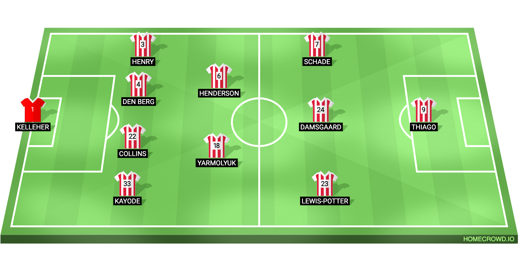 Probable Lineup (4-2-3-1): Kelleher; Kayode, Collins, van den Berg, Henry; Yarmolyuk, Henderson; Lewis-Potter, Damsgaard, Schade; Thiago
