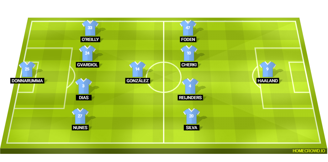 Probable Lineup (4-1-4-1): Donnarumma; Nunes, Dias, Gvardiol, O’Reilly; Gonzalez; Bernardo Silva, Reijnders, Cherki, Foden; Haaland