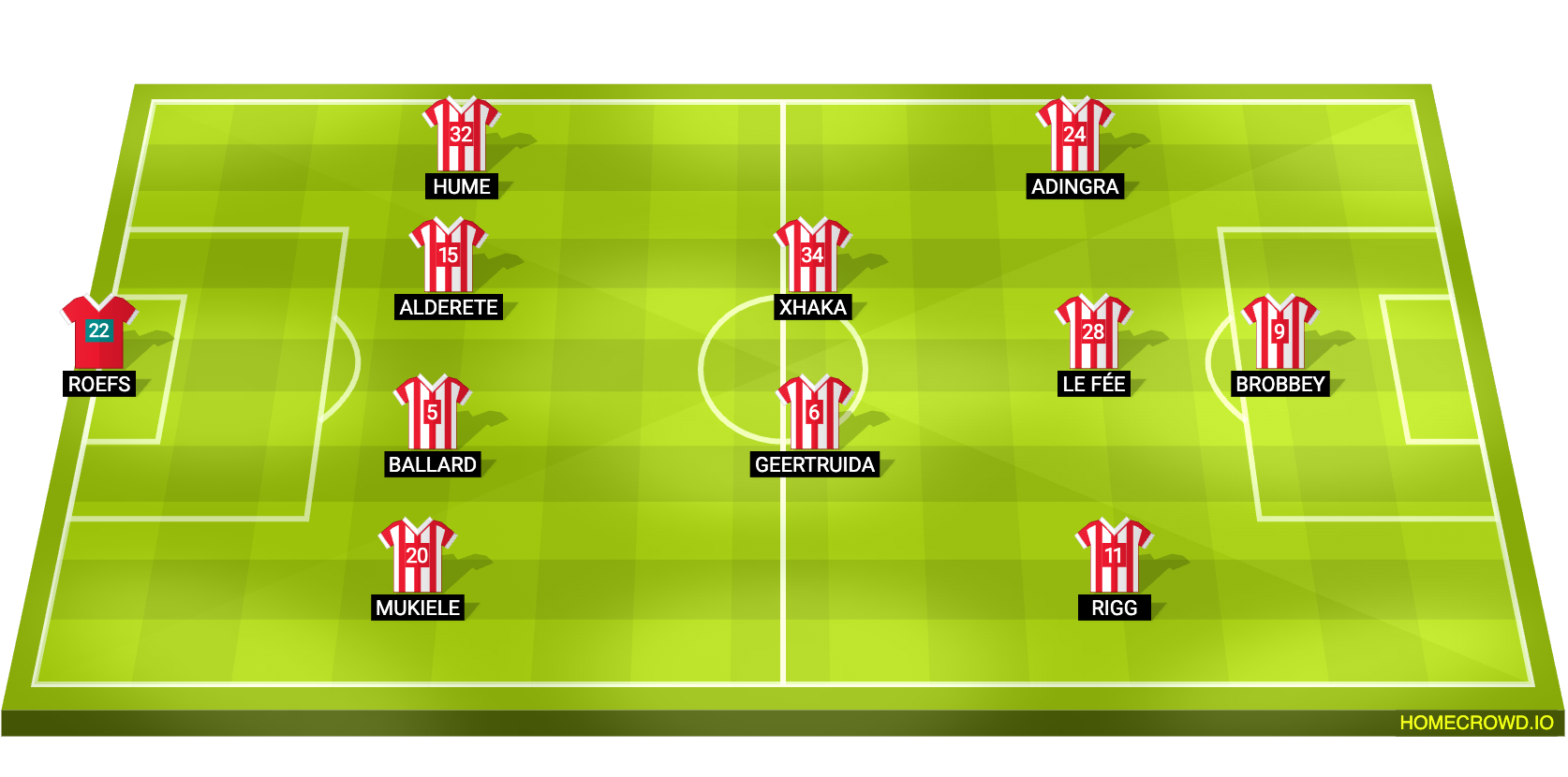Probable Lineup (4-2-3-1): Roefs; Mukiele, Ballard, Alderete, Hume; Xhaka, Geertruida; Rigg, Le Fee, Adingra; Brobbey