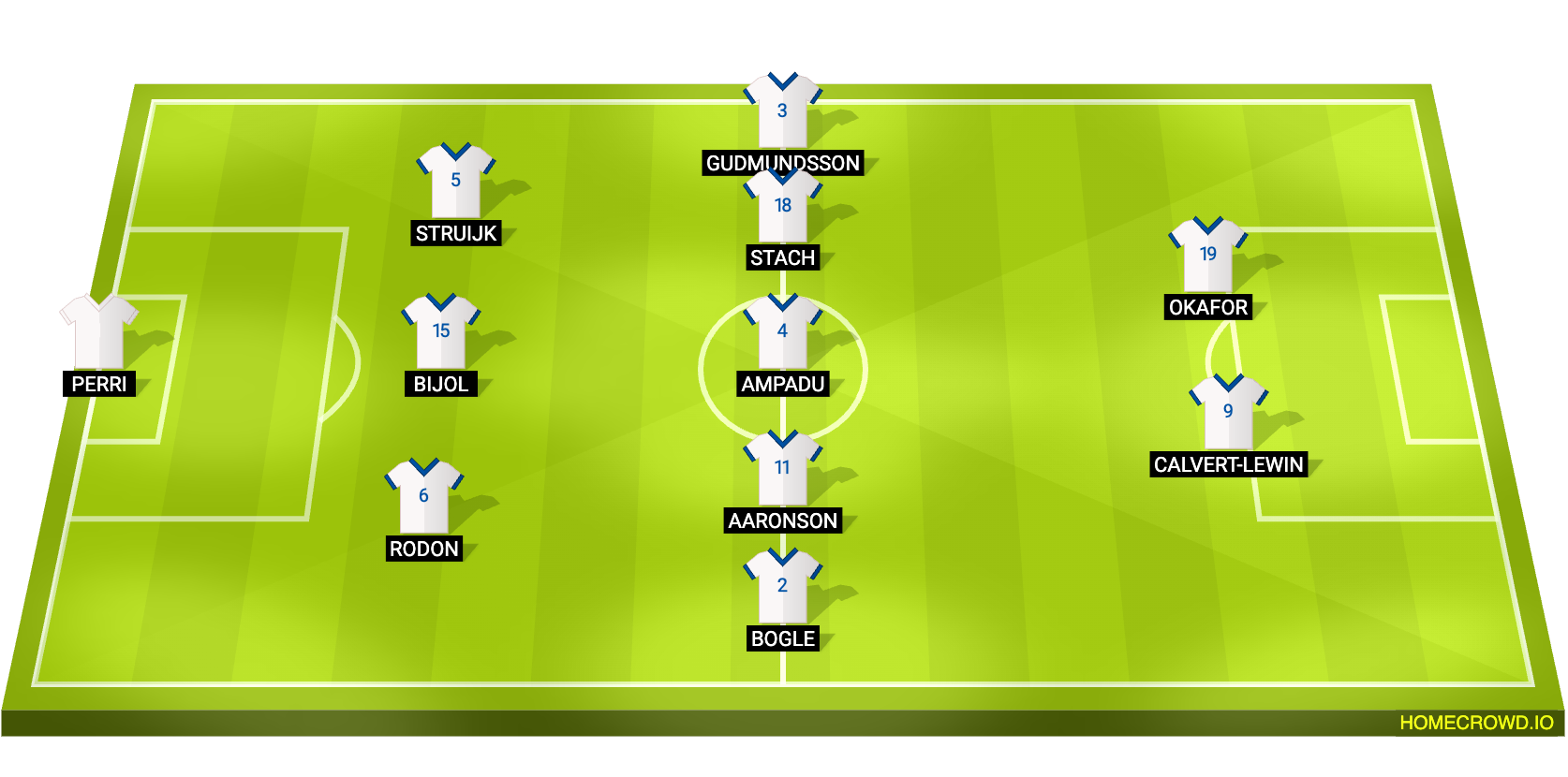 Probable Lineup (3-5-2): Perri; Rodon, Bijol, Struijk; Bogle, Aaronson, Ampadu, Stach, Gudmundsson; Calvert-Lewin, Okafor