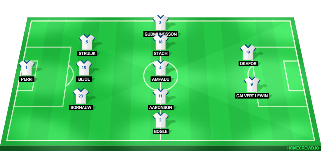 Probable Lineup (3-5-2): Perri; Bornauw, Bijol, Struijk; Bogle, Aaronson, Ampadu, Stach, Gudmundsson; Calvert-Lewin, Okafor