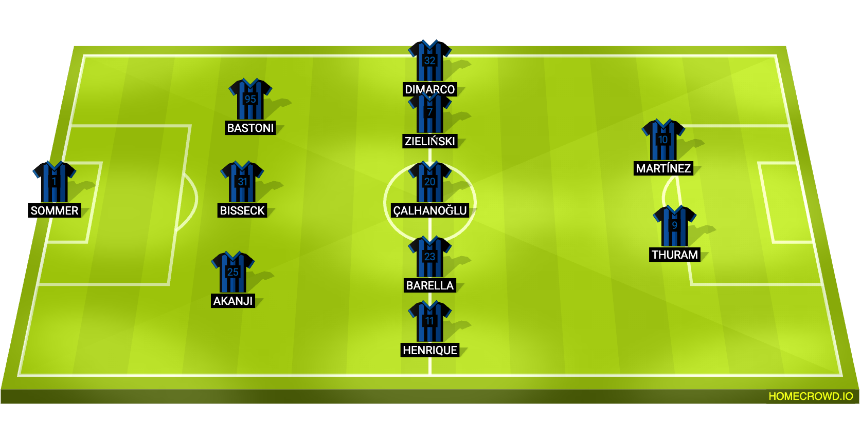 Probable Lineup (3-5-2): Sommer; Akanji, Bisseck, Bastoni; Henrique, Barella, Calhanoglu, Zielinski, Dimarco; Martinez; Thuram