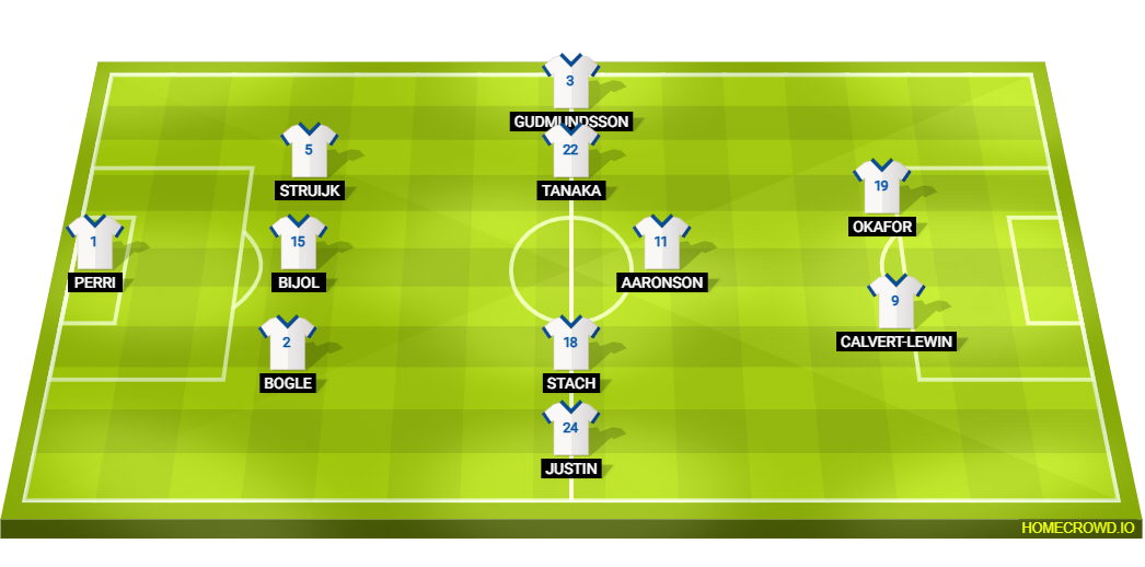 Probable Lineup (3-5-2): Perri; Bogle, Bijol, Struijk; Justin, Stach, Aaronson, Tanaka, Gudmundsson; Calvert-Lewin, Okafor