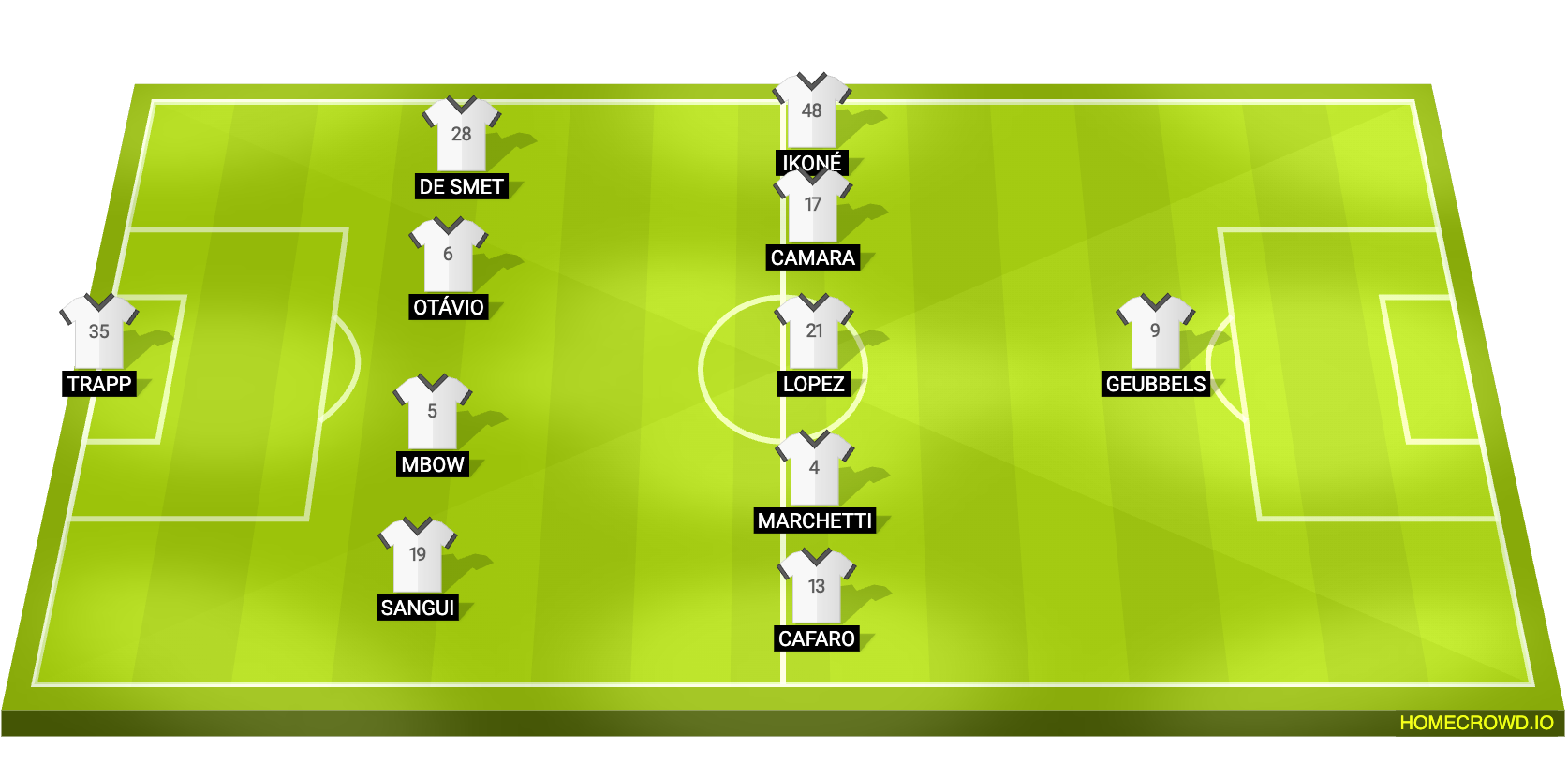 Probable Lineup (4-5-1): Trapp; Sangui; Mbow, Otavio, Smet; Cafaro, Marchetti, Lopez, Camara, Ikone; Geubbels