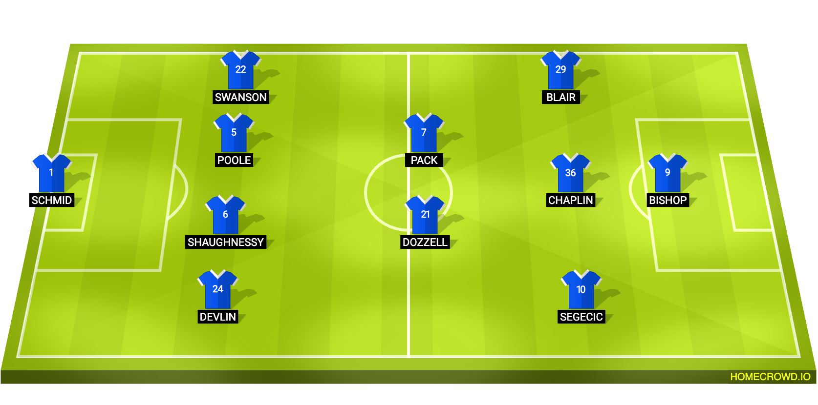 Probable Lineup (4-2-3-1): Schmid; Devlin, Shaughnessy, Poole, Swanson; Dozzell, Pack; Segecic, Chaplin, Blair; Bishop
