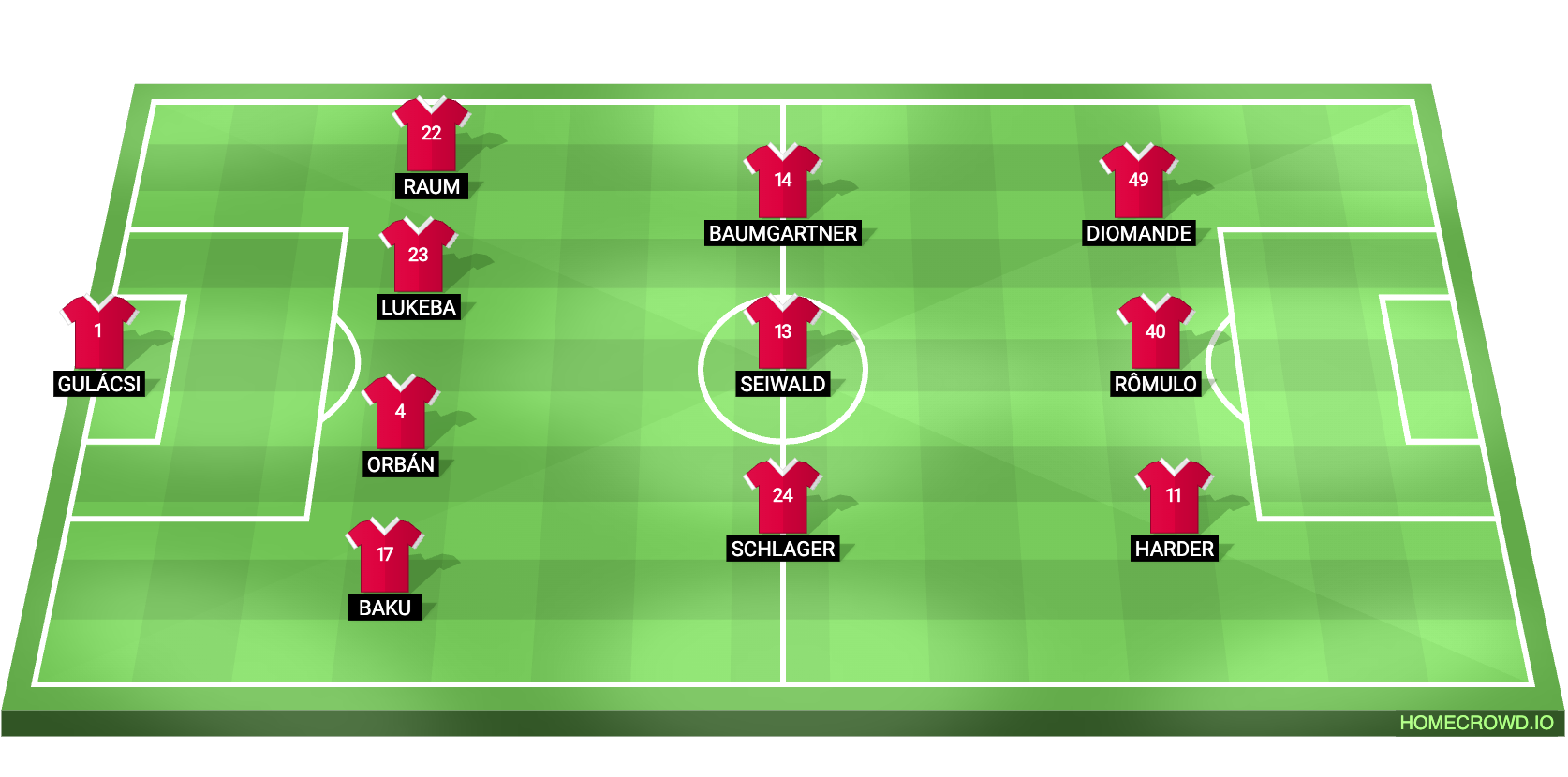 Probable Lineup (4-3-3): Gulacsi; Baku, Orban, Lukeba, Raum’ Schlager, Siewald, Baumgartner; Harder, Romulo, Diomande