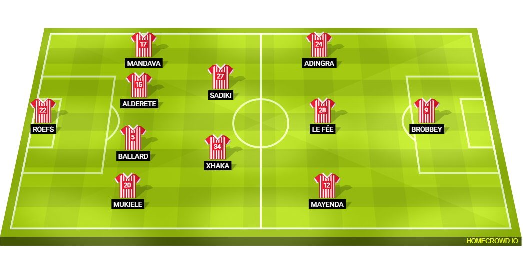 Probable Lineup (4-2-3-1): Roefs; Mukiele, Ballard, Alderete, Reinildo; Xhaka, Sadiki; Mayenda, Le Fee, Adingra; Brobbey