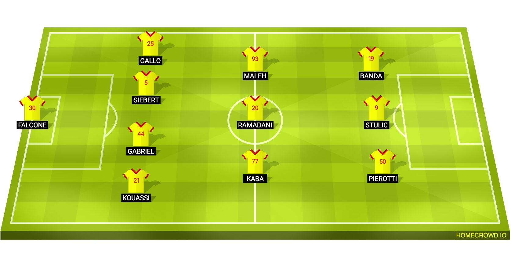 Probable Lineup (4-3-3): Falcone; Kouassi, Gabriel, Siebert, Gallo; Kaba, Ramadani, Maleh; Pierotti, Stulic, Banda