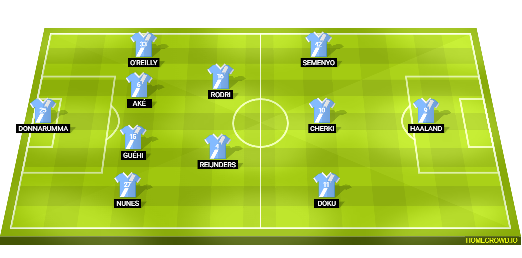 Probable Lineup (4-2-3-1): Donnarumma; Nunes, Guehi, Ake, O’Reilly; Reijnders, Rodri; Doku, Cherki, Semenyo; Haaland