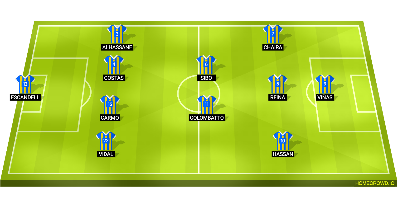 Probable Lineup (4-2-3-1): Escandell; Vidal, Carmo, Costas, Alhassane; Colombatto, Sibo; Hassan, Reina, Chaira; Vinas