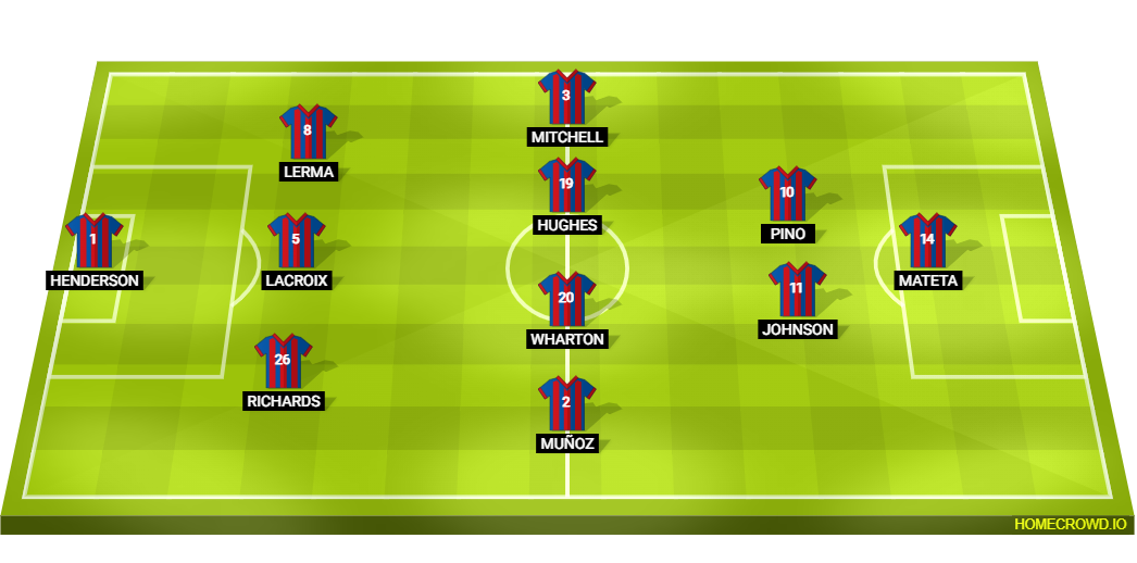 Probable Lineup (3-4-2-1): Henderson; Richards, Lacroix, Lerma; Munoz, Wharton, Hughes, Mitchell; Johnson, Yeremy; Mateta