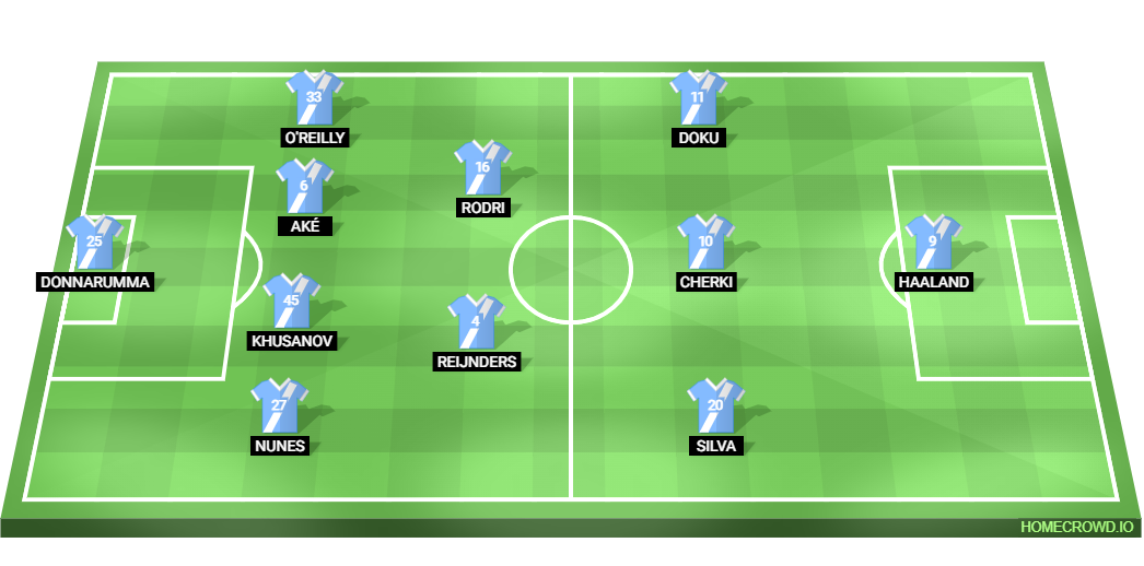 Probable Lineup (4-2-3-1): Donnarumma; Nunes, Khusanov, Ake, O’Reilly; Reijnders, Rodri; Silva, Cherki, Doku; Haaland