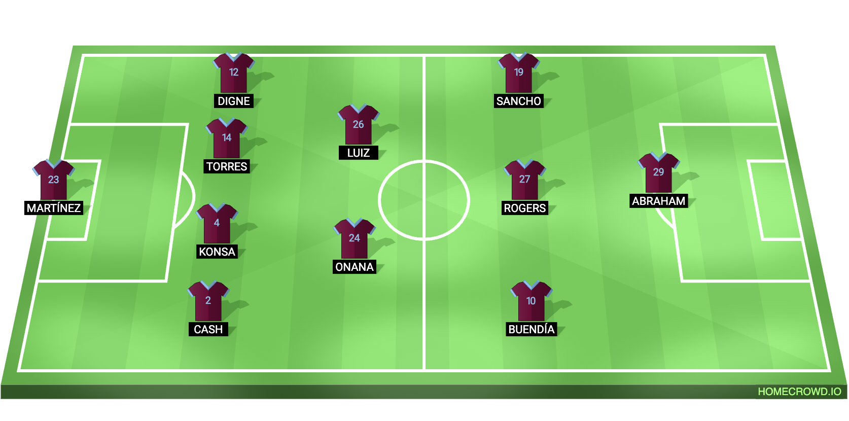 Probable Lineup (4-2-3-1): Martinez; Cash, Konsa, Torres, Digne; Onana, Luiz; Buendia, Rogers, Sancho; Abraham