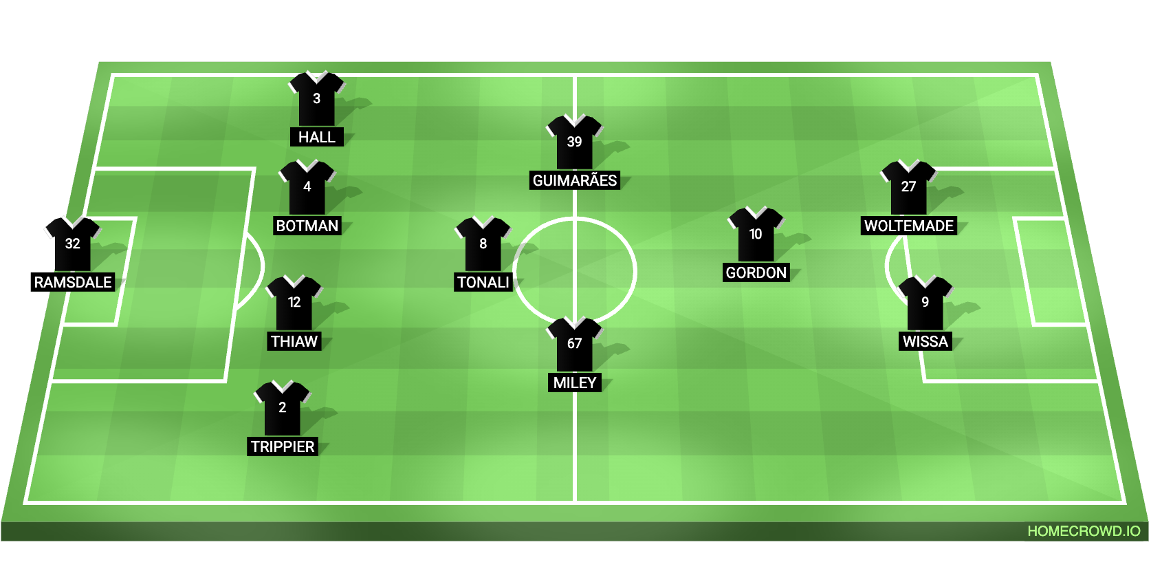 Probable Lineup (4-3-1-2): Ramsdale; Trippier, Botman, Thiaw, Hall; Bruno, Tonali, Miley; Gordon; Wissa, Woltemade