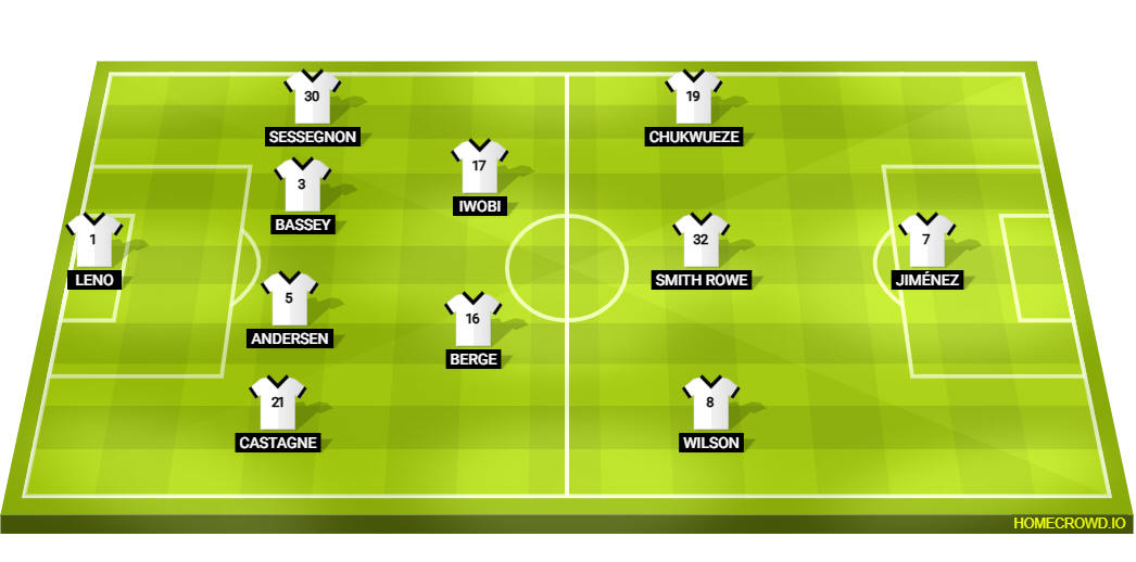 Probable Lineup (4-2-3-1): Leno; Castagne, Andersen, Bassey, Sessegnon; Berge, Iwobi; Wilson, Smith Rowe, Chukwueze; Jimenez