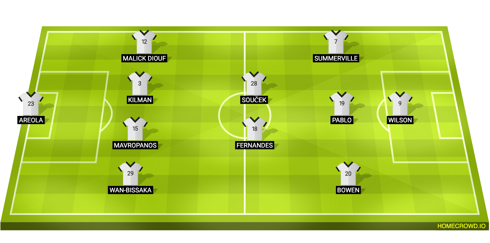 Max Kilman should replace Todibo at the back, while Dinos Mavranopanos will keep his place in central defence, while Aaron Wan-Bissaka and Malick Diouf should keep their full-back berths. Tomas Soucek and Mateus Fernandes should feature in that midfield, with Pablo operating in a role behind Wilson. The in-form Summerville will be a certain starter alongside talisman Bowen in that frontline.