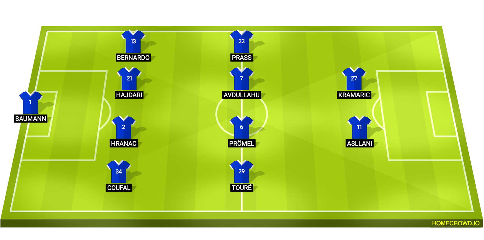 Probable Lineup (4-4-2): Baumann; Coufal, Hranac, Hajdari, Bernardo; Toure, Promel, Avdullahu, Prass; Asllani, Kramaric