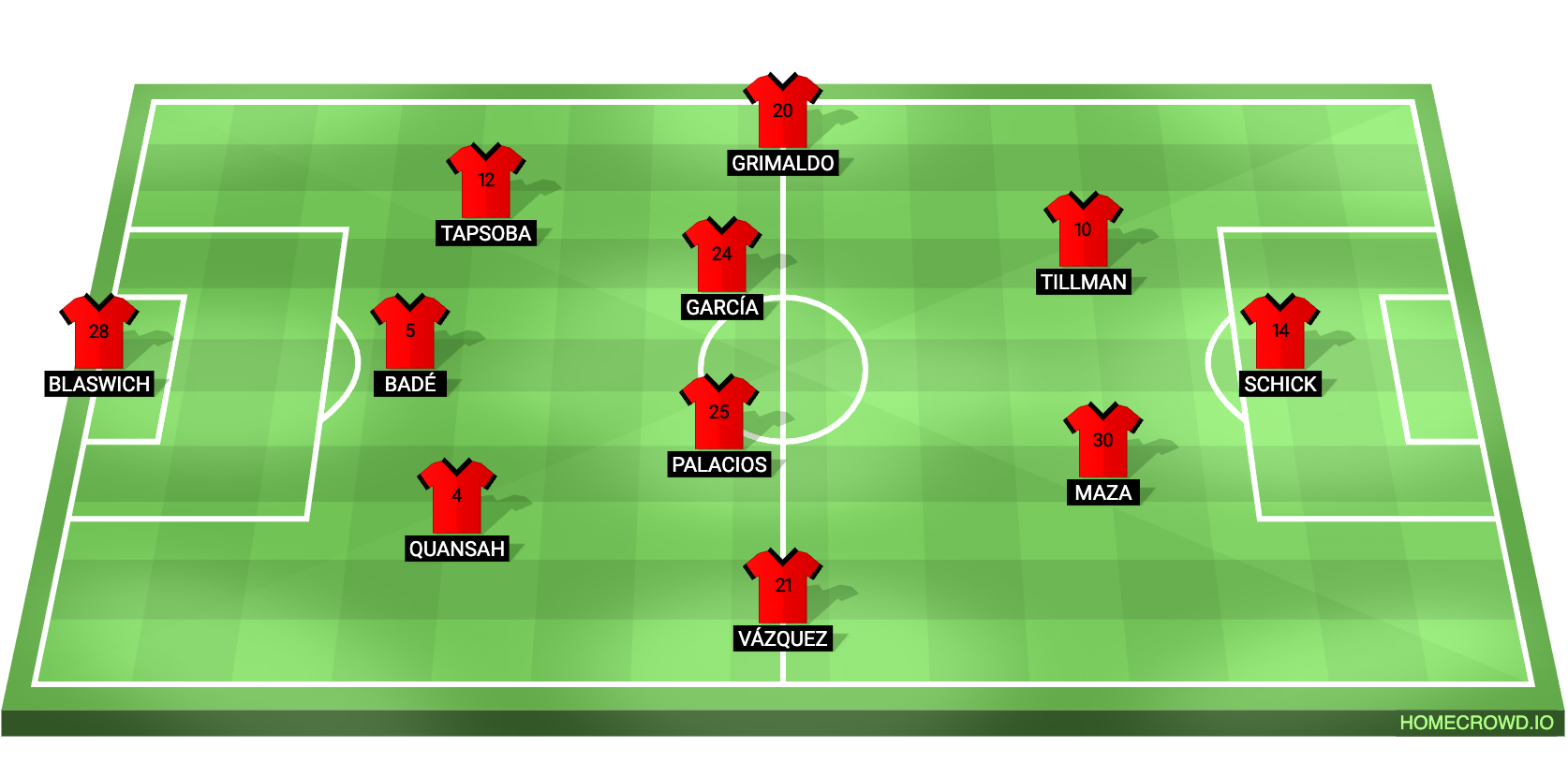 Probable Lineup (3-4-2-1): Blaswich; Quansah, Bade, Tapsoba; Vazquez, Garcia, Palacios, Grimaldo; Maza, Tillman; Schick