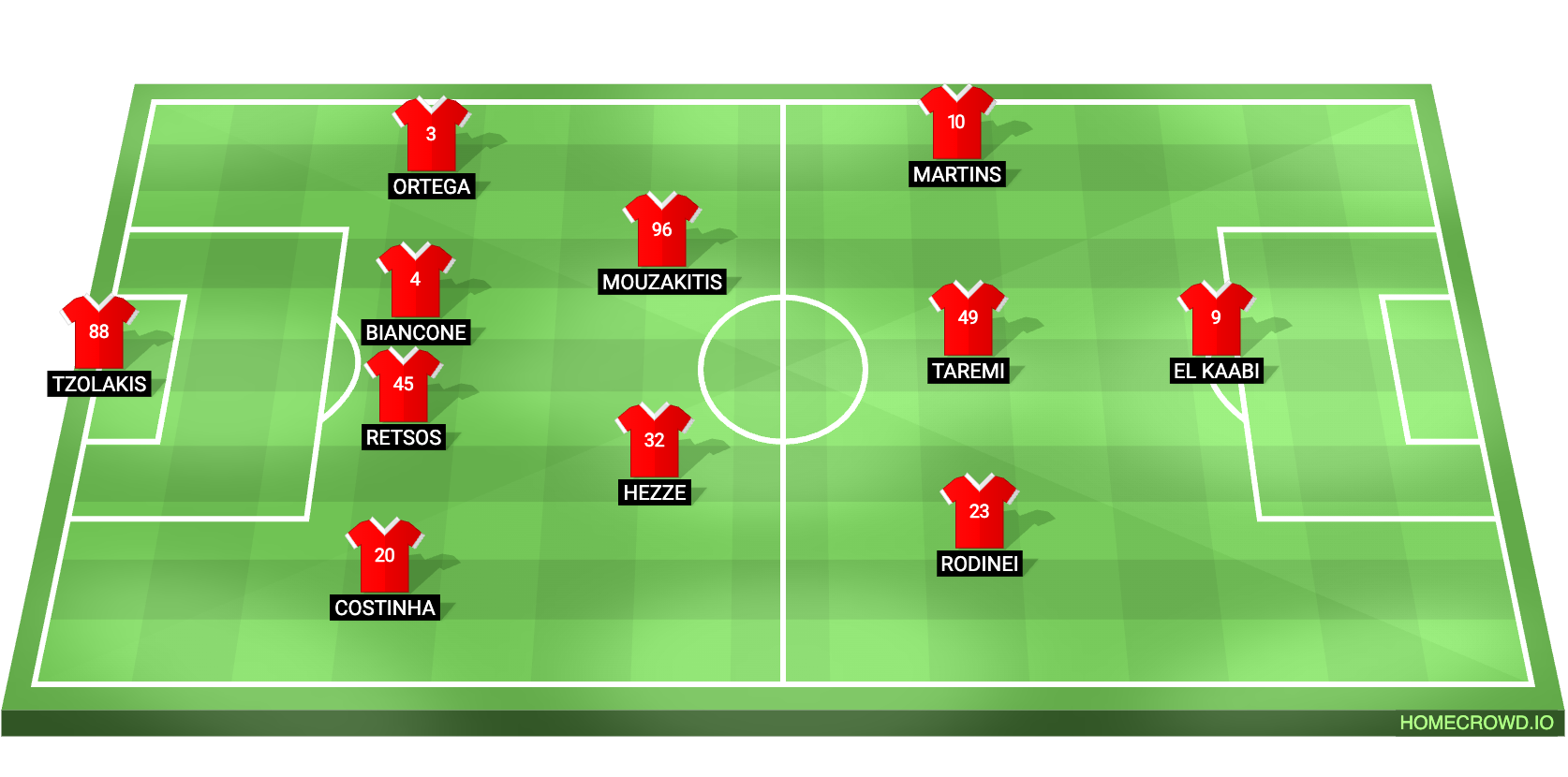 Probable Lineup (4-3-2-1): Tzolakis; Costinha, Retsos, Biancone, Ortega; Hezze, Mouzakitis; Rodinei, Taremi, Martins; Kaabi
