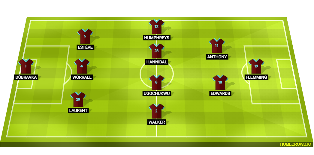 Probable Lineup (3-4-2-1): Dubravka; Laurent, Worrall, Esteve; Walker, Ugochukwu, Hannibal, Humphreys; Edwards, Anthony; Flemming