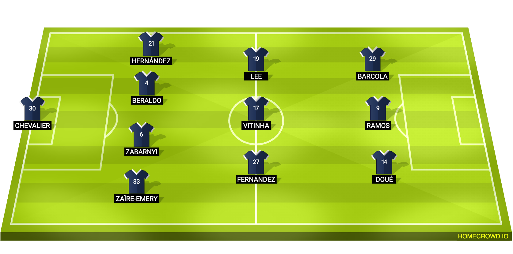 Probable Lineup (4-3-3): Chevalier; Zaire-Emery, Zabarnyi, Beraldo, Hernandez; Fernandez, Vitinha, Kang-in; Doue, Ramos, Barcola