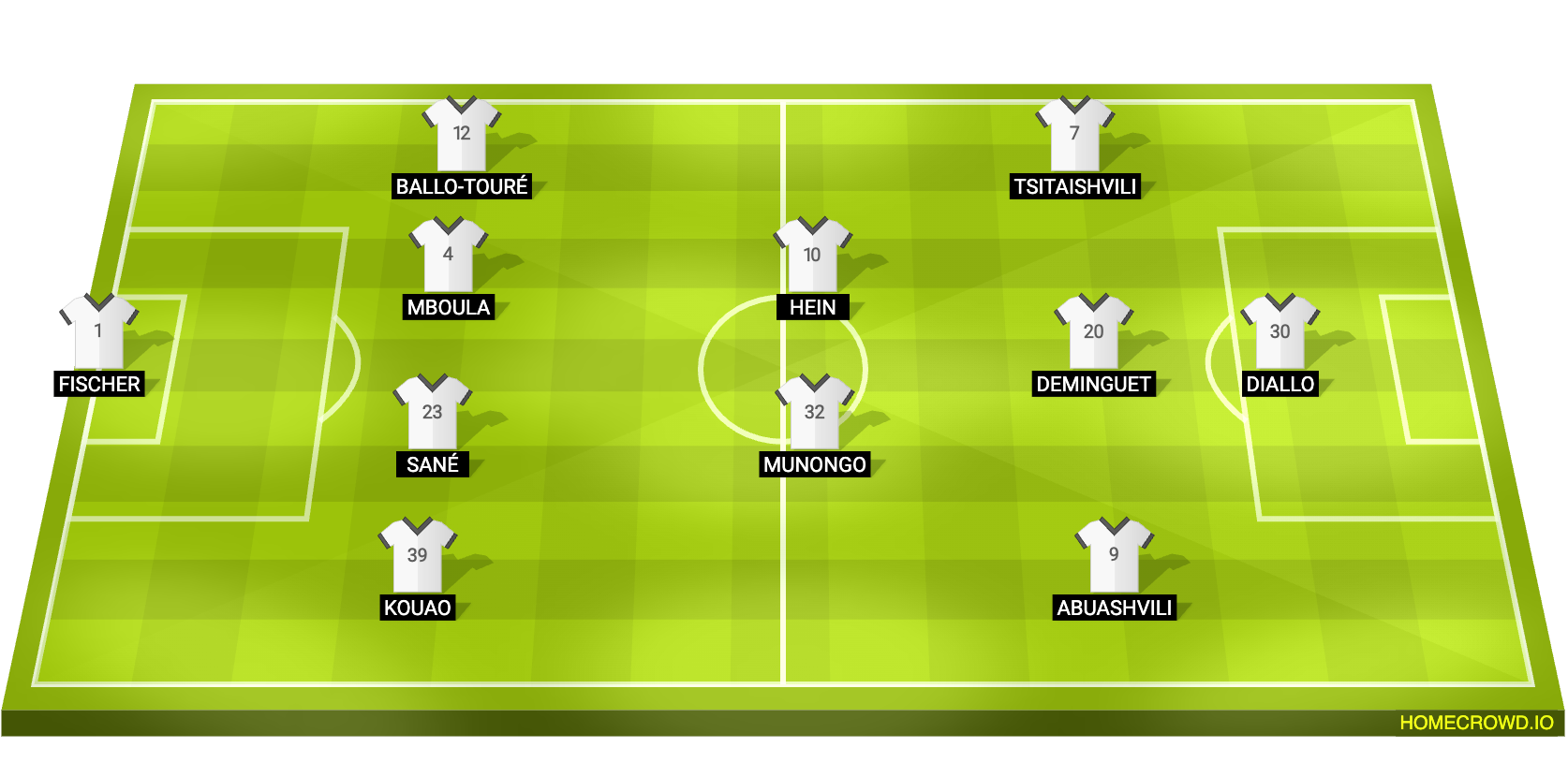 Probable Lineup (4-2-3-1): Fischer; Kouao, Sane, Mboula, Ballo-Toure; Munongo, Hein; Abyashvili, Deminguet, Tsitaishvili; Diallo