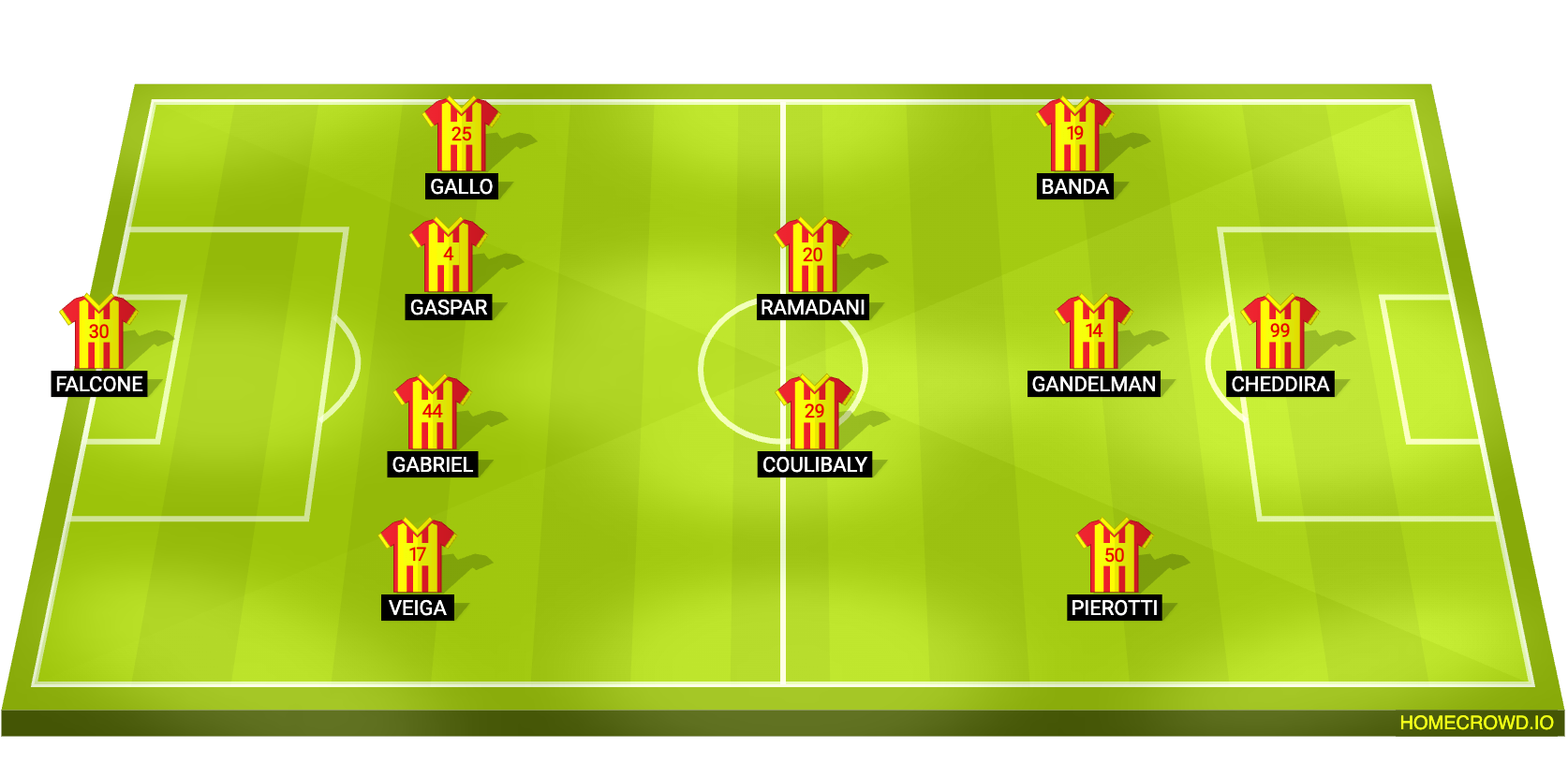 Probable Lineup (4-2-3-1): Falcone; Veiga, Gabriel, Gaspar, Gallo; Coulibaly, Ramadani; Pierotti, Gandelman, Banda; Cheddira