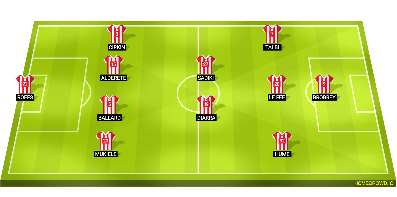 Brian Brobbey is widely expected to lead the line despite intense competition for his spot, while stand-in skipper Trai Hume will start on the right wing, with Chemsdine Talbi on the other flank. Dan Ballard and Omar Alderete will operate at the heart of the defence, while Nordi Mukiele will play at right-back, and Dennis Cirkin is expected to replace Mandava on the left.
