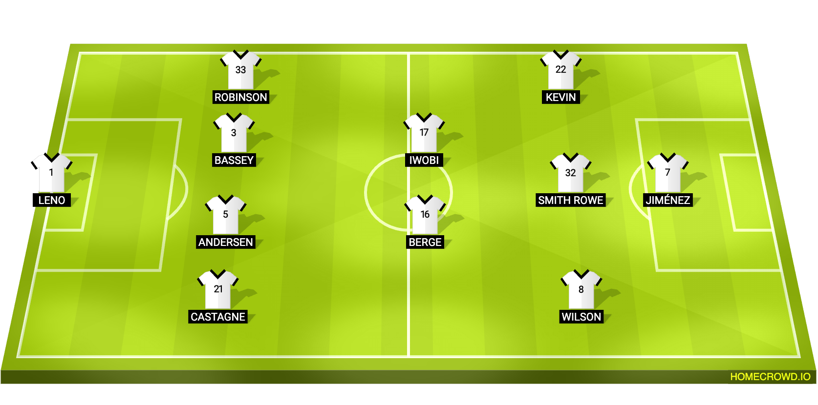 Probable Lineup (4-2-3-1): Leno; Castagne, Andersen, Bassey, Sessegnon; Iwobi, Berge; Wilson, Smith Rowe, Kevin; Jimenez