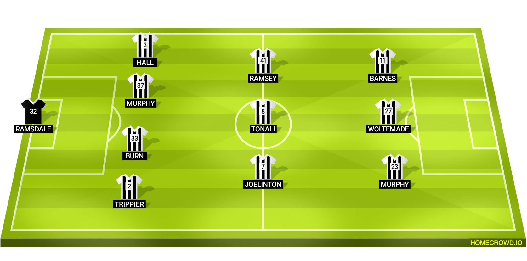 Probable line-up (4-3-3): Ramsdale; Trippier, Burn, A. Murphy, Hall; Joelinton, Tonali, Ramsey; J. Murphy, Woltemade, Barnes