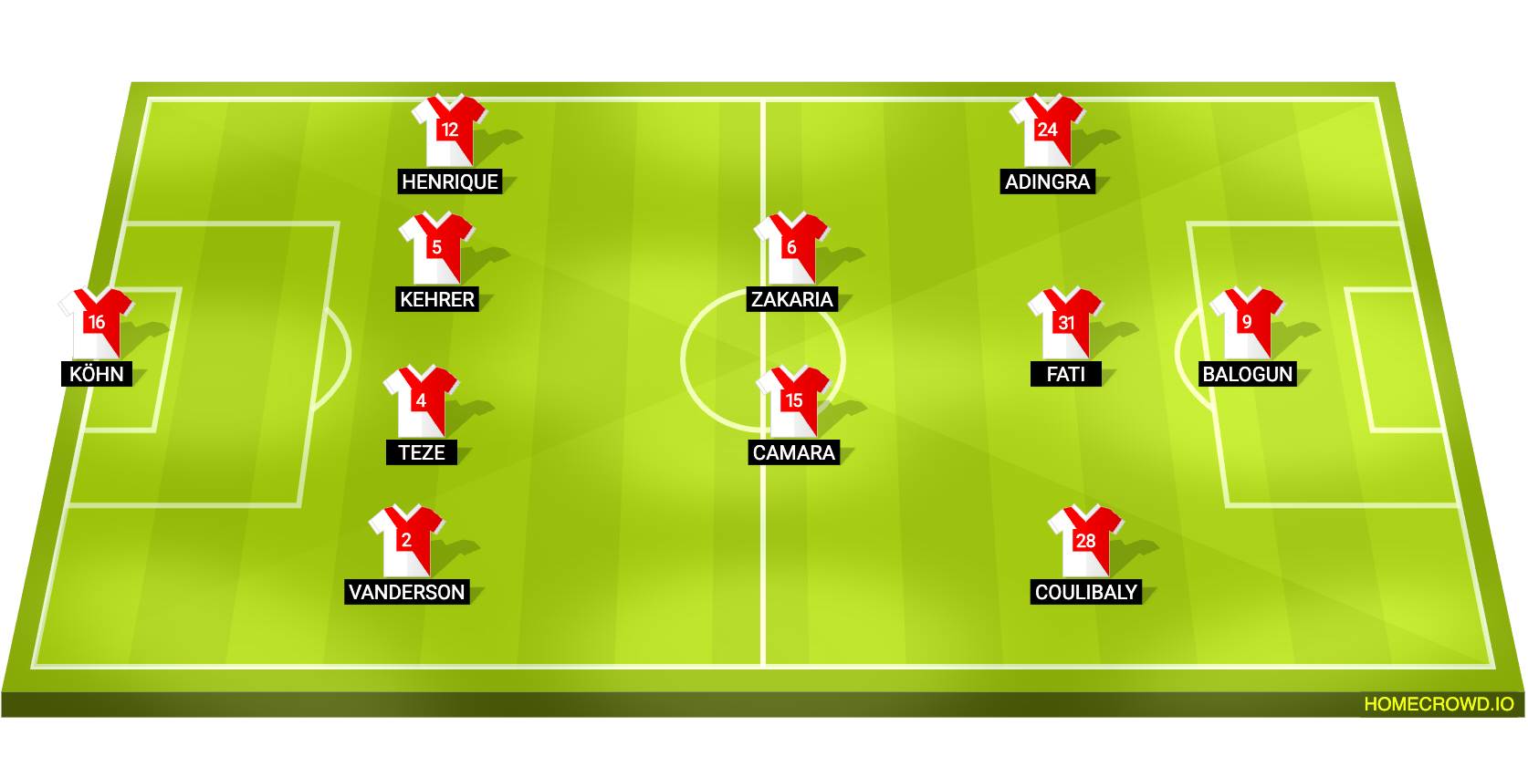 Probable Lineup (4-2-3-1): Kohn; Vanderson, Teze, Kehrer, Henrique; Camara, Zakaria; Coulibaly, Fati, Adingra; Balogun