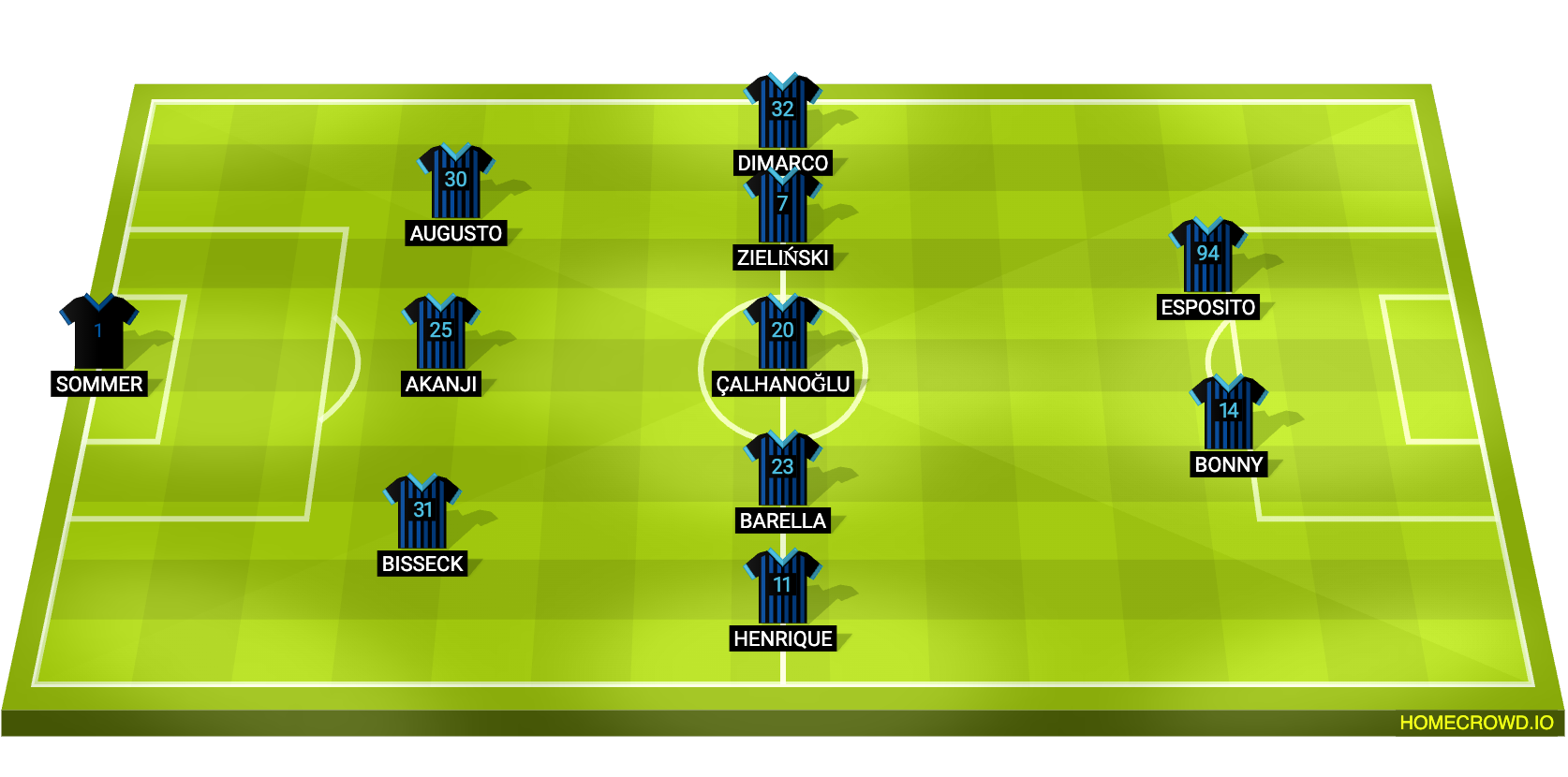 Probable Line-up (3-5-2): Sommer; Bisseck, Akanji, Augusto; Henrique, Barella, Calhanoglu, Zielinski, Dimarco; Bonny, Esposito