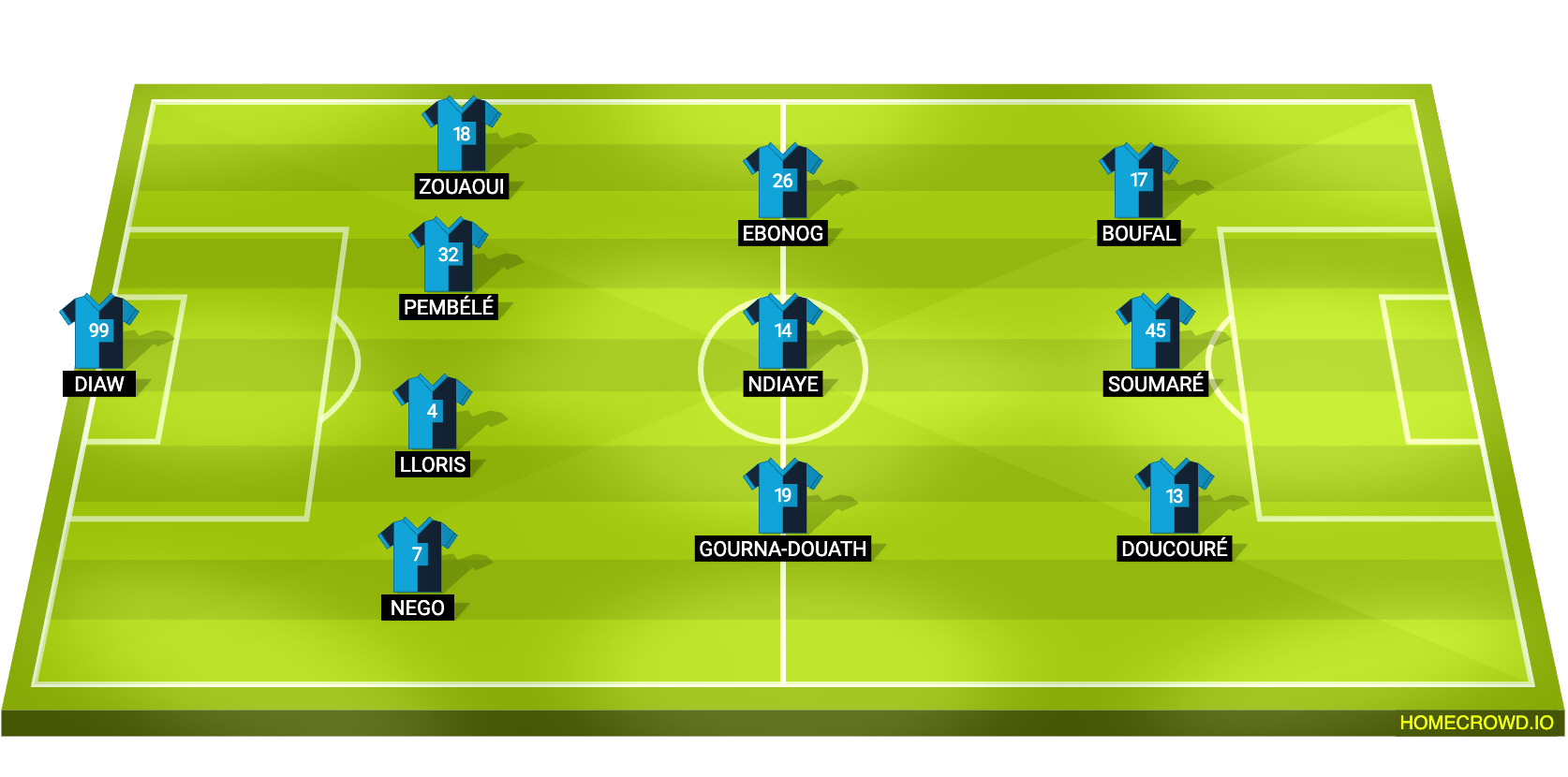 Probable Line-up (4-3-3): Diaw; Nego, Lloris, Pembele, Zouaoui; Gourna-Douath, Ndiaye, Ebonog; Doucoure, Soumare, Boufal