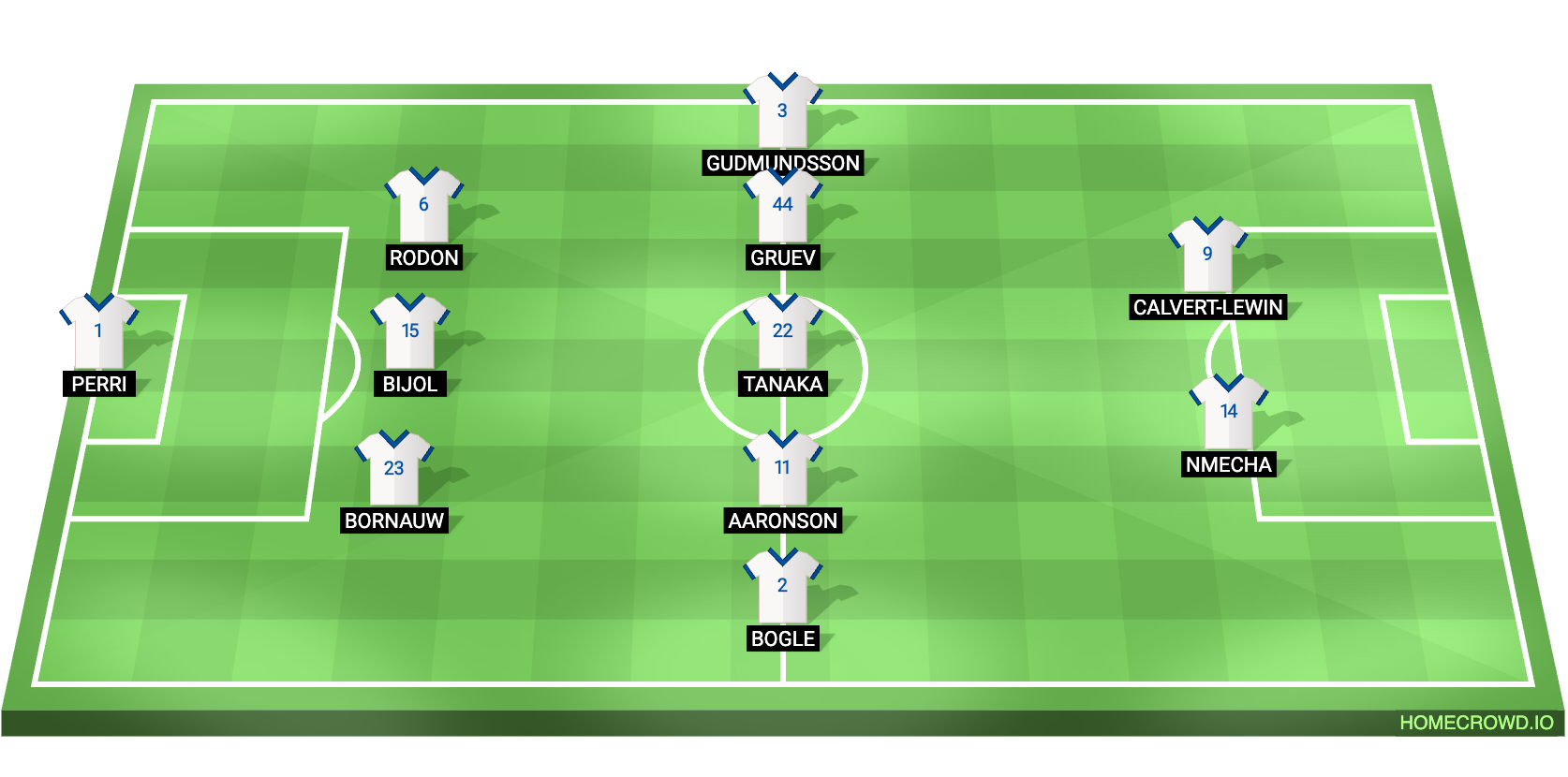 Probable Lineup (3-5-2): Perri; Bornauw, Bijol, Struijk; Bogle, Tanaka, Aaronson, Gruev, Gudmundsson; Nmecha, Calvert-Lewin