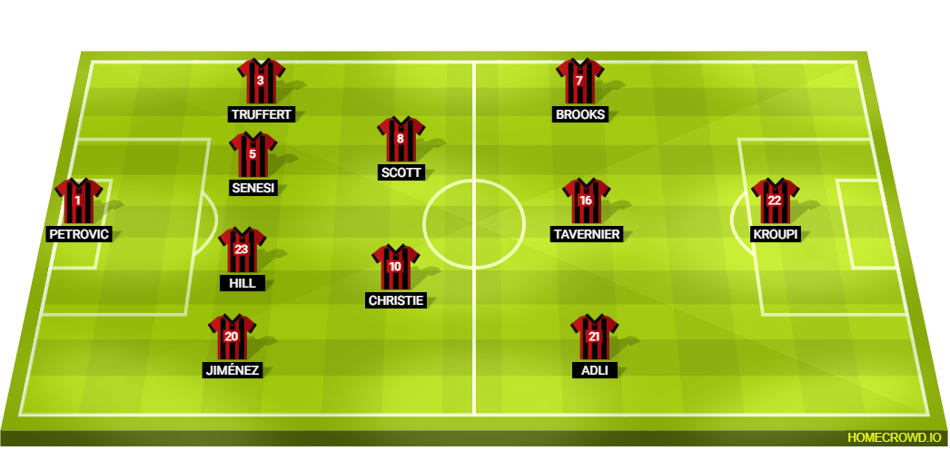 Probable Lineup (4-2-3-1): Petrovic; Jimenez, Hill, Senesi, Truffert; Christie, Scott; Adli, Tavernier, Brooks; Kroupi