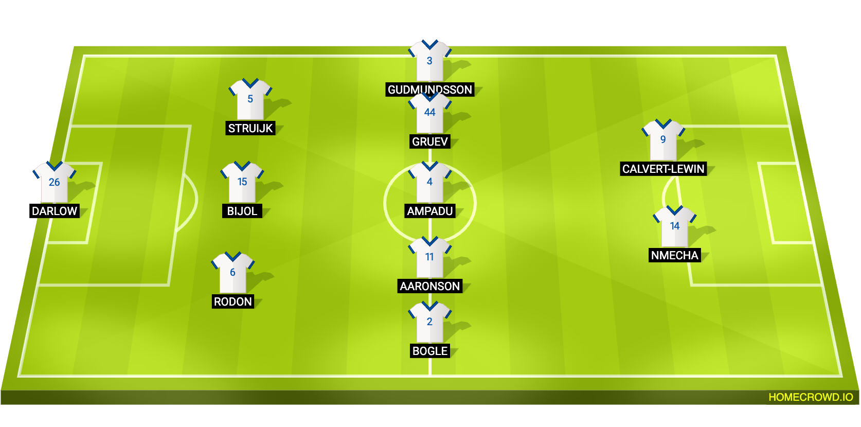 Probable Line-up (3-5-2): Darlow; Rodon, Bijol, Struijk; Bogle, Aaronson, Ampadu, Gruev, Gudmundsson; Nmecha, Calvert-Lewin